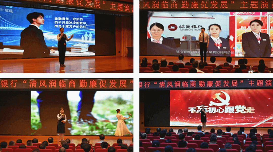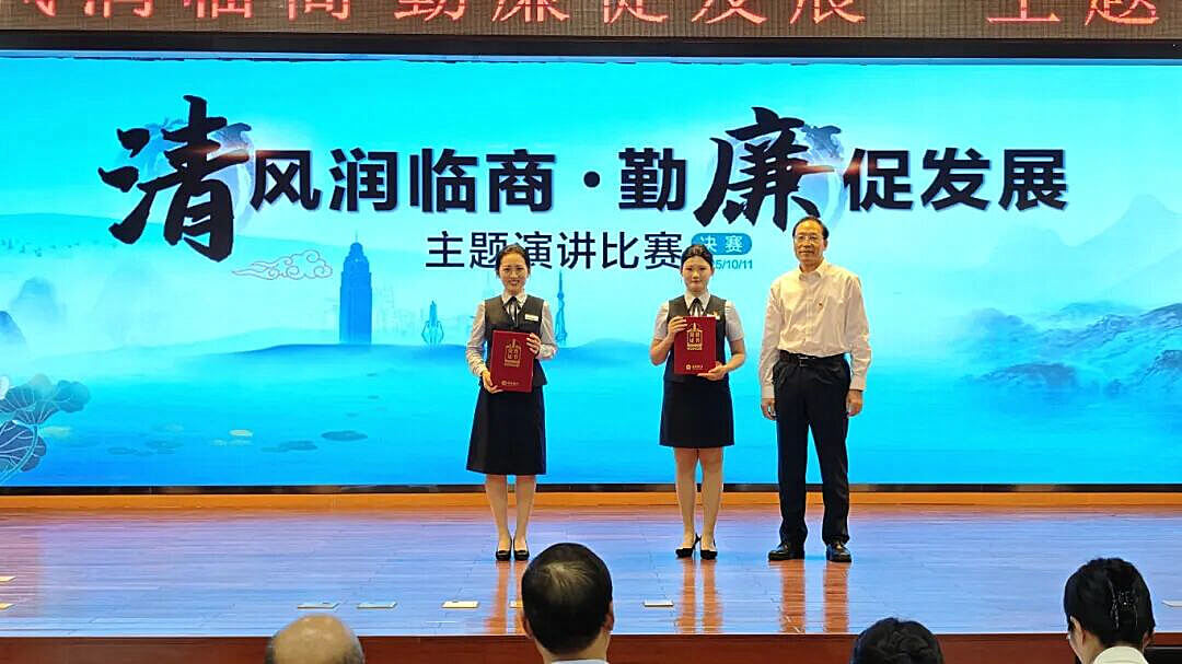 决赛现场,共有10位经过前期选拔的选手依次登台,围绕“清风润临商 勤廉促发展”这一主题展开精彩演讲。有的选手慷慨激昂,以铿锵之词抒发清廉正气;有的选手娓娓道来,用细腻语言讲述身边故事,从不同角度诠释了对廉洁从业的理解。他们结合岗位实际,于细微处彰显合规理念;援引典型案例,在反思中叩问初心使命;更将心中对职守的忠诚、对规章的敬畏,转化为言行中恪守的准则与底线。选手们真挚的讲述与动人的故事深深吸引了全场观众,现场气氛热烈,掌声迭起。