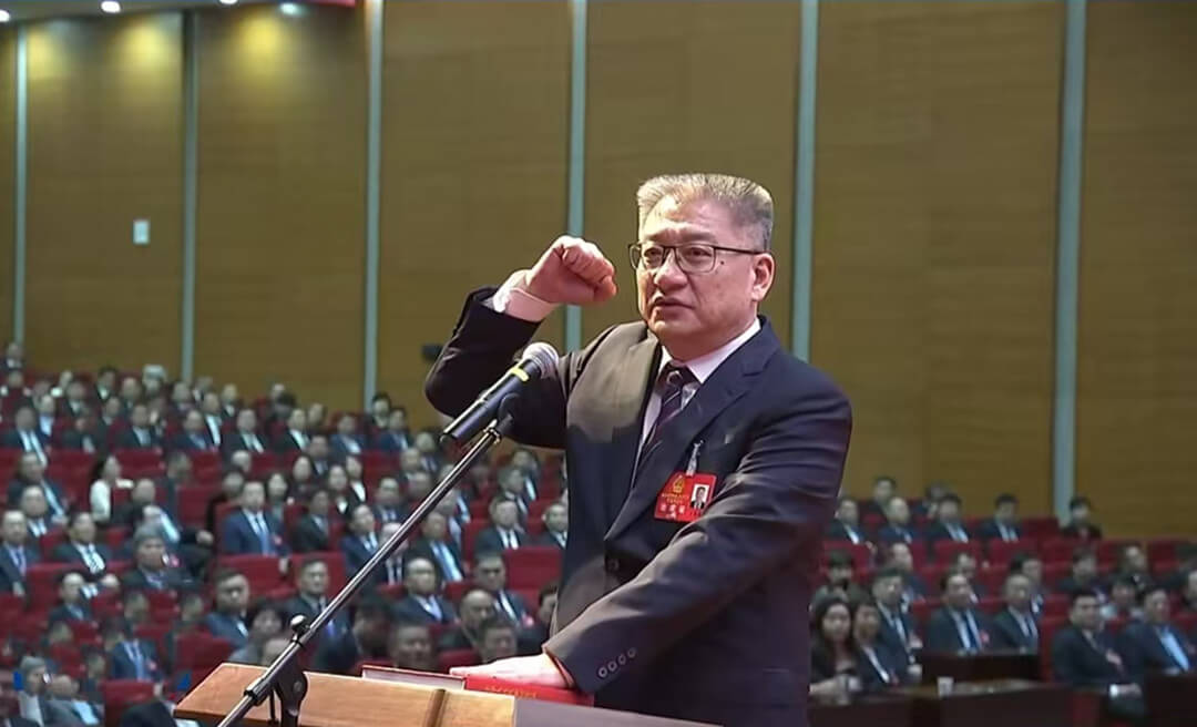 大会举行宪法宣誓仪式,于胜涛上台宣誓,并作表态发言。