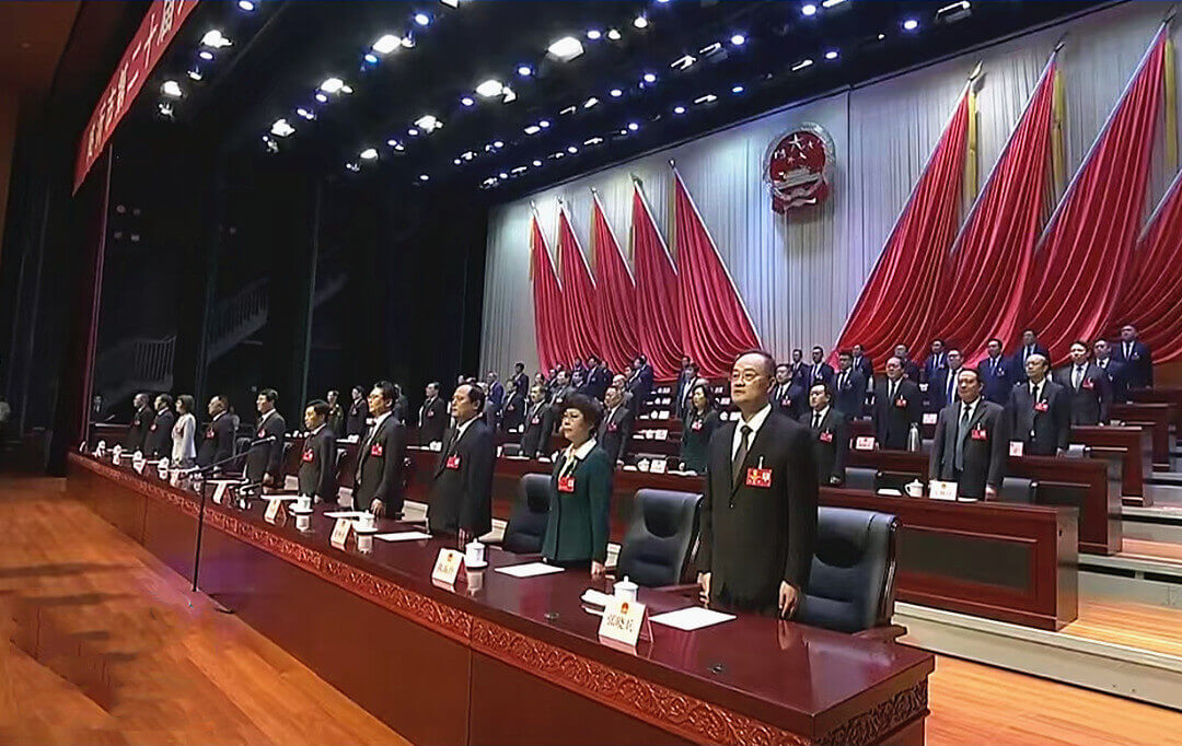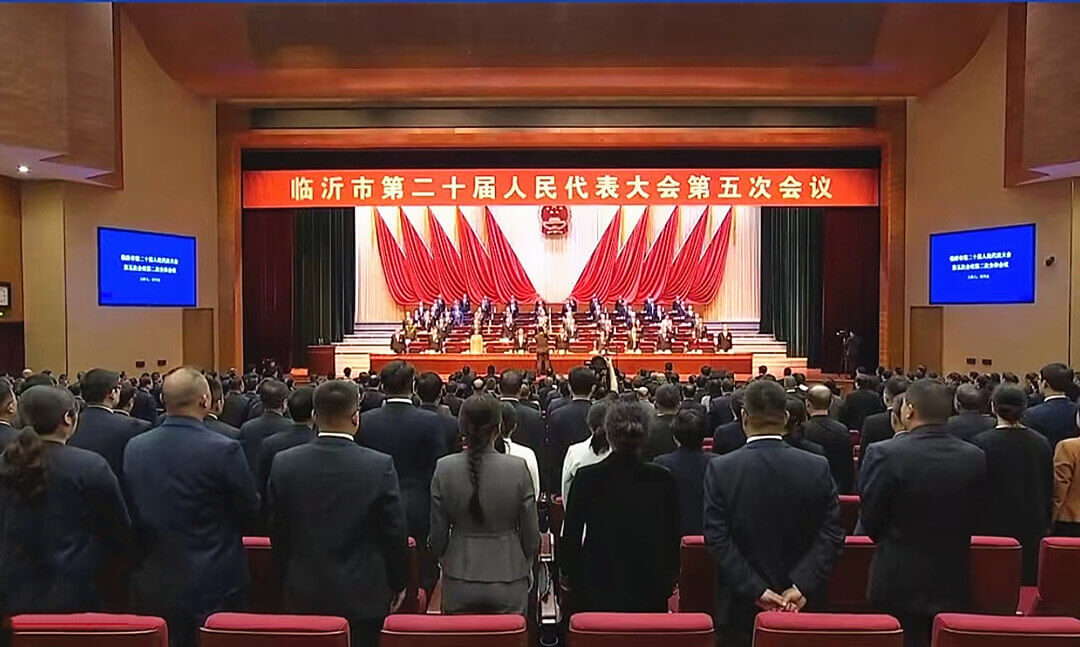崔凤友宣布:临沂市第二十届人民代表大会第五次会议开幕。会场响起雄壮的国歌声。