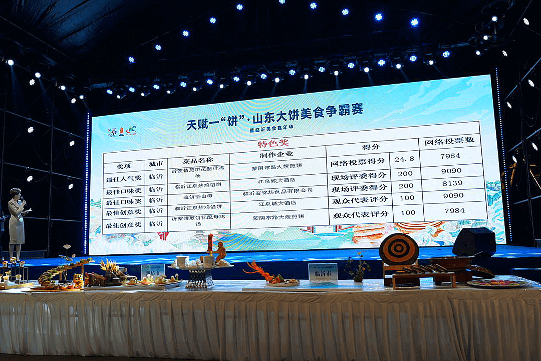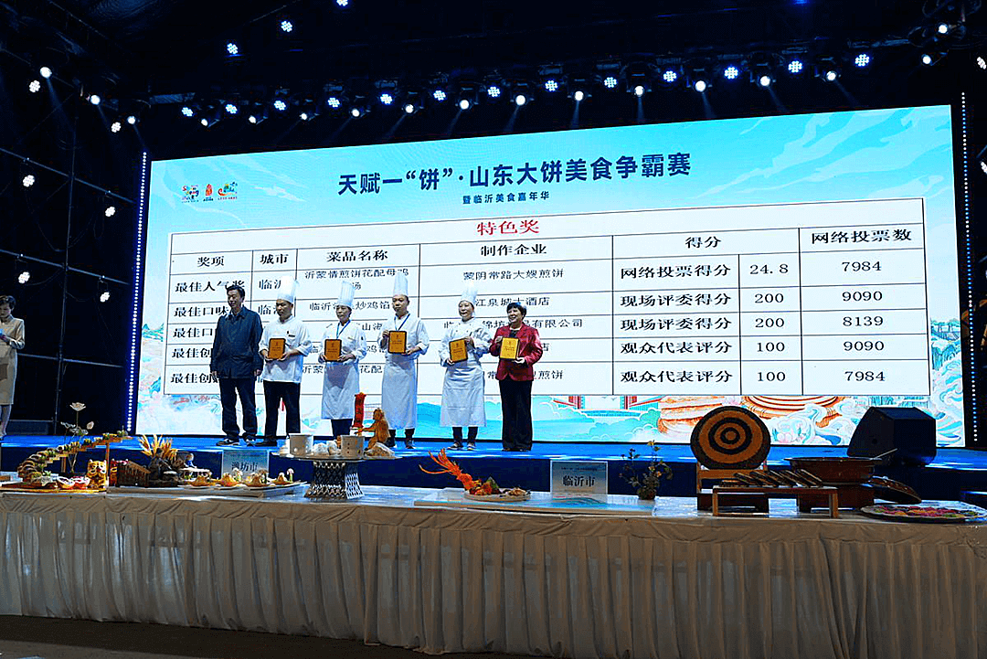 本届大赛汇聚全省16市近百名烹饪高手,临沂队以“江泉炒鸡馅饼”“盘丝饼配江泉白粥”等七款融合本土文化的美食强势出战。尽管遭遇降雨等不利因素,现场仍人气爆棚,观众超万人次。经过三天激烈角逐,临沂队凭借口味创新、技艺难度及文化内涵的多维优势,从济南、潍坊等强队中脱颖而出,最终以961.1分的高分摘得金牌,济南、潍坊、日照分获银牌及铜牌。