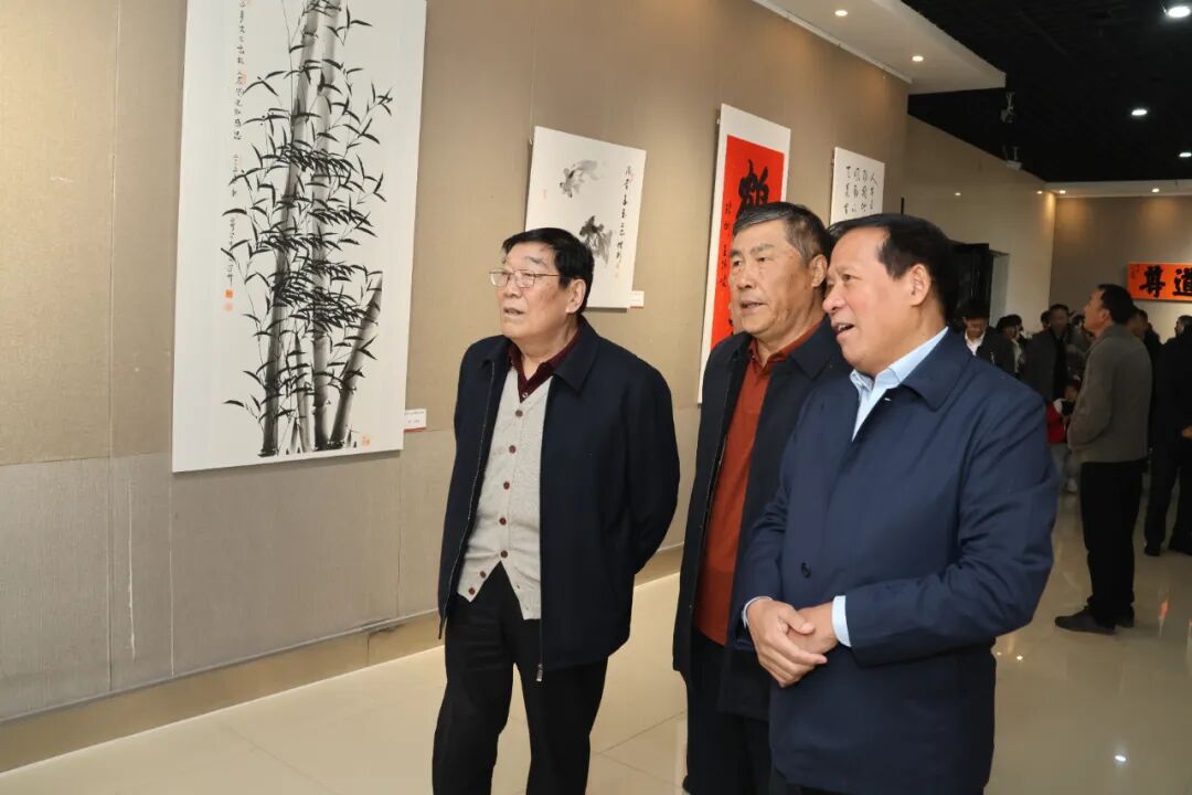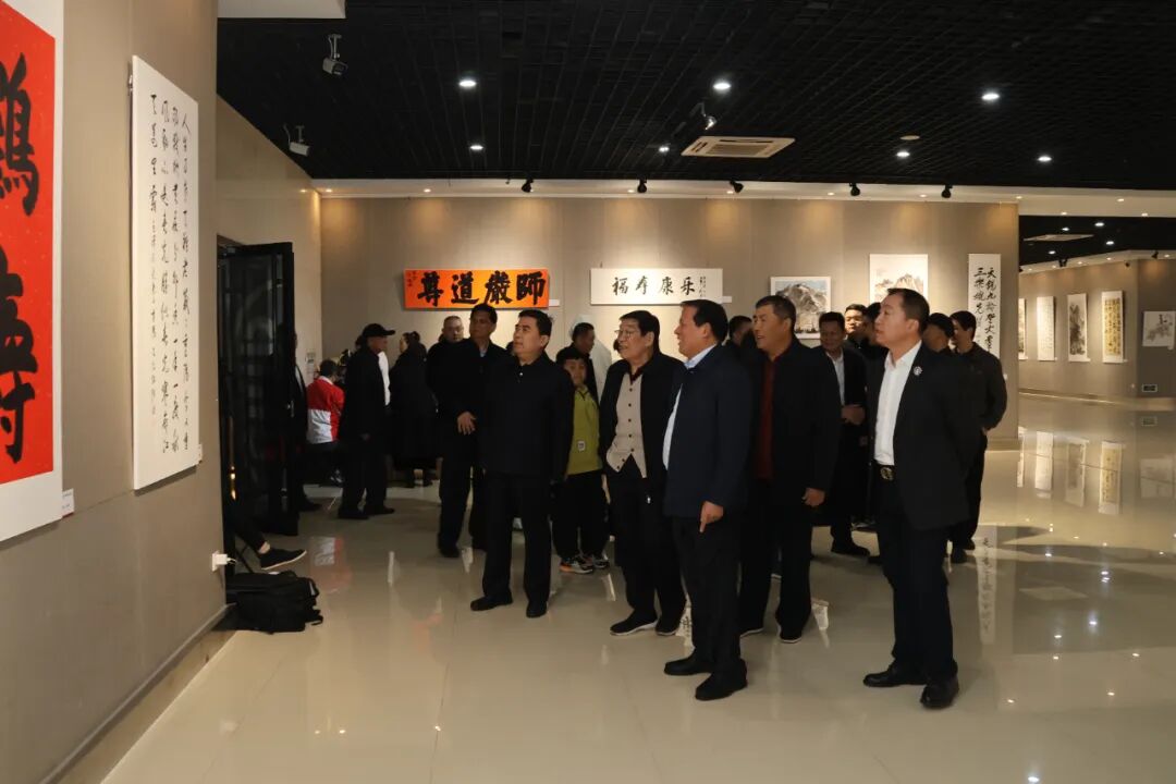 市人大常委会原党组书记、第一副主任、市关工委主任朱绍阳,市人大常委会原党组副书记、副主任、市慈善联合总会会长徐福田、市老干部书画研究会会长沈孝生、市慈善联合总会副会长厉建仁、邹际国,市文联原主席刘建都同志,市文联党组成员、副主席于泳,老干部书画研究会监事长张瑜、副会长王经耀、杨明友、王昕明、刘凤云,省女画家协会副主席、市女画家协会主席刘玉英,市民政局原副局长、著名画家吴晓玲,市收藏协会主席、临沂慈善书画院院长李军,市美协副主席、秘书长梁庸,市美协主席团成员、临沂慈善书画院执行院长诸葛瑞波,兰山区美协主席徐庆战,临沂康谷温泉疗养院院长魏荣堂,山东植汇升科技集团董事长萧大为,上海齐昔生物集团董事长孙庆文,常健医生集团董事长黄金刚,市文房四宝协会会长张兰波,羲之书法创始人徐剑飞,市女企业家商会会长周朝霞,市女企业家联谊会会长丁强,著名书画家王振雷、刘中华、周洪胜、周雪峰、李思娜以及部分参展作品作者、来自社会各界的爱心企业家、艺术家、新闻媒体工作者等三百余人参加了开幕式。