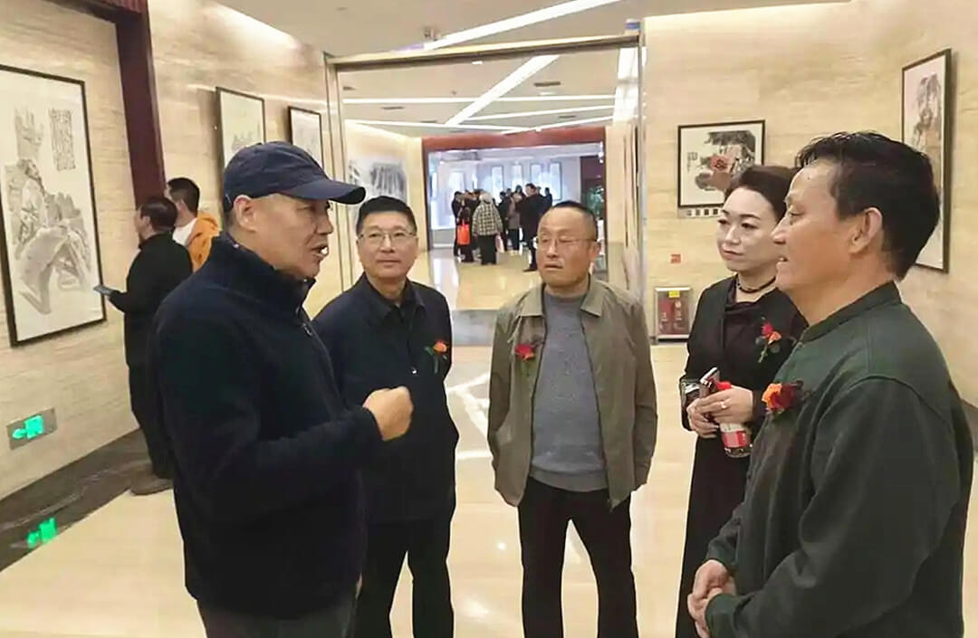 张立奎先生向参观画展的嘉宾介绍作品