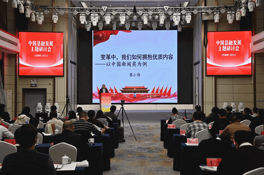同时举行的中国县融发展主题研讨会上,国务院政府特殊津贴专家、福建省记协主席蔡小伟作了题为《变革中,我们如何拥抱优质内容》的主旨演讲;国务院政府特殊津贴专家、中国人民大学教授宋建武作了题为《从新质生产力对人类信息生产和交互活动的影响,看主流媒体的系统性变革》的主旨演讲;泰州报业传媒集团党委书记、董事长、社长杨勇作了题为《一个三线城市的微信公众号,如何实现3年营收5000多万》的主旨演讲。随后,与会媒体同行还就“移动优先的县融实践与创新”“新闻创优推动县融系统性变革”“县级媒体经营创新探索”等主题分三组进行深入研讨交流。会后,与会人员还赴姜堰区融媒体中心参观、学习。