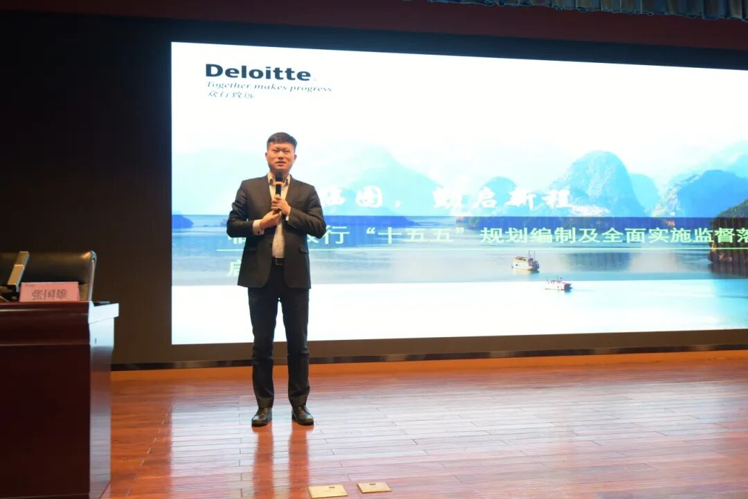 德勤中国资深经济学家张国雄博士围绕国内外经济运行态势展开深度解析,聚焦我国逆周期调节政策发力点、区域经济协同发展新趋势等核心议题,结合银行业发展规律作出前瞻性判断。德勤中国合伙人朱磊分享了德勤服务国内多家金融机构的成功案例,从战略定位、业务布局、风险管控等维度,为临商银行量身提供了可借鉴的实践路径。合伙人蔡帼娅详细解读了规划编制的核心步骤,明确了各阶段工作重点、时间节点与责任分工,为临商银行高效推进 “十五五” 战略规划编制工作奠定了清晰的执行框架。