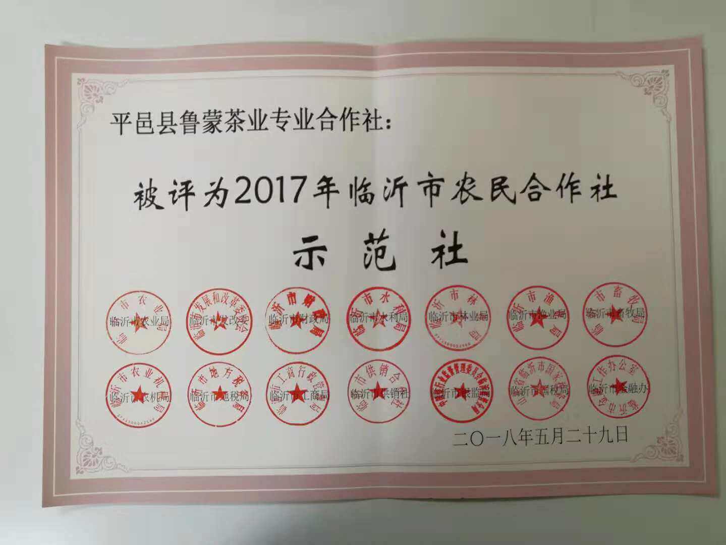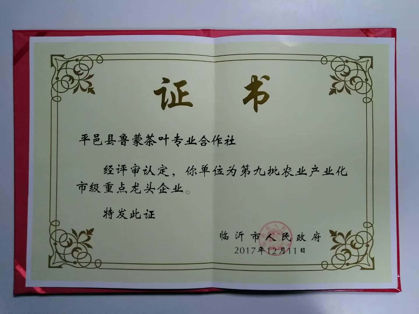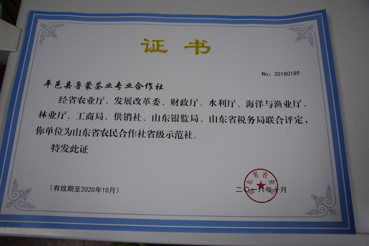 平邑县鲁蒙茶业专业合作社2011年成立,位于平邑县仲村镇,现为山东省旅游商品研发基地、山东省农民合作社省级示范社、临沂市模范集体、临沂市农业产业化重点龙头企业、临沂市新六产示范经营主体、山东手造产自临沂重点企业、平邑县最佳旅游商品生产企业。