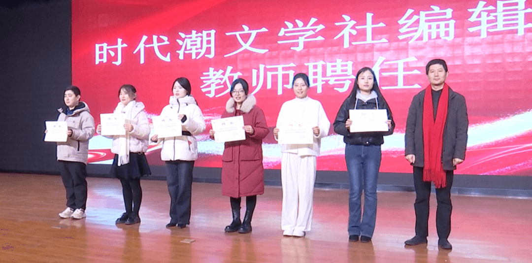在纳新仪式上,首先为“时代潮”编辑部教师颁发聘书,市文联党组成员、副主席于泳为指导教师颁发聘书,感谢他们为文学社发展付出的辛勤努力。随后,市作家协会主席张岚、罗庄区委常委、宣传部部长、区教育工委书记李婷为新一届文学社骨干成员颁发聘书,鼓励他们勇挑重担、主动担当。