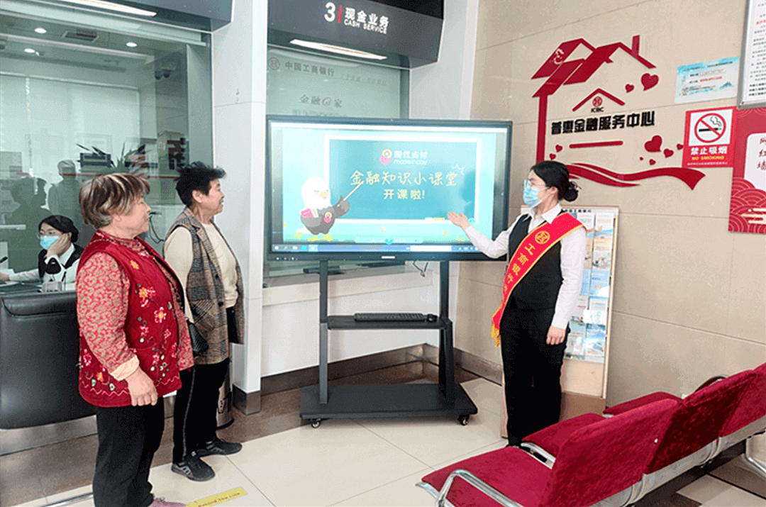 图6 支行客户经理为到店老年客户讲解金融知识,提高防电信诈骗意识和反诈能力
