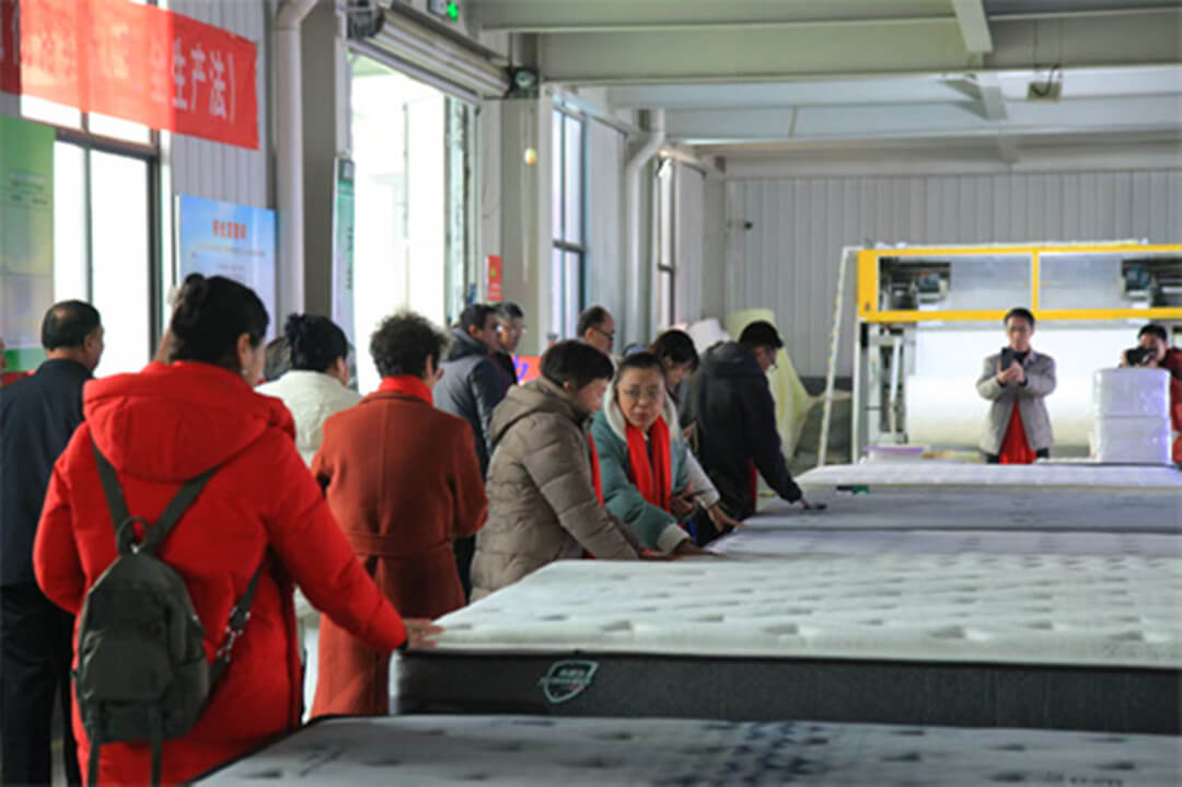 在企业负责人陪同下,嘉宾一行实地参观生产厂房,近距离感受水波尔床垫以科学研发为核心,坚守舒适、安全、环保的产品标准,严谨的生产工艺与品质追求令大家感触颇深。企业上下团结和睦、同心干事的良好风貌,更获现场一致称赞。