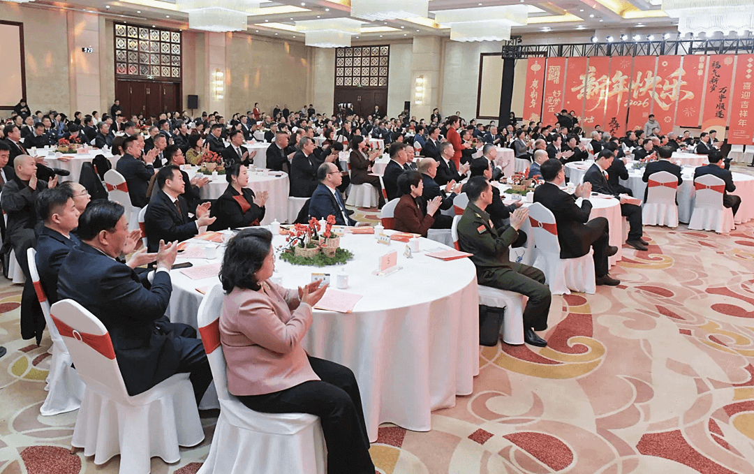鲁南经济网讯 在马年春节来临之际,2月12日上午,2026年临沂市迎春茶话会举行,各界人士代表欢聚一堂、共迎新春、共话未来。市委书记张宝亮出席并讲话,市委副书记、市长于胜涛出席并通报全市经济社会发展情况,市人大常委会主任崔凤友、市政协主席边峰出席,市委副书记、统战部部长戚军主持。