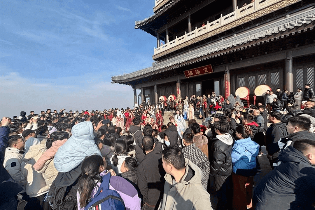 天蒙景区依托东夷文化打造了《丙午纳福・望海聚仙》古风NPC大秀,《沂蒙山小调》以行进式沉浸式实景演艺形式全新呈现;《爱丽丝奇幻之旅》儿童剧上演真人互动,带孩子步入会说话的童话森林,让天蒙山成为一座流动的“年俗剧场”。