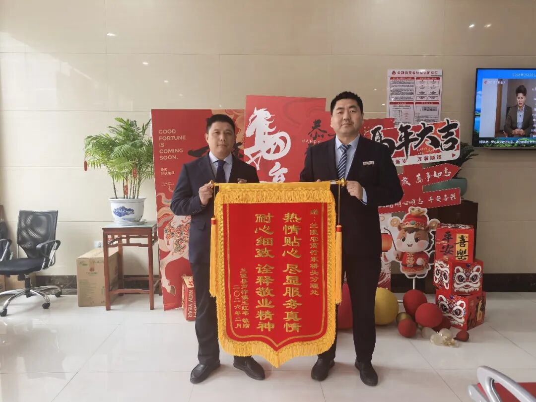 鲁南经济网讯 2月26日,兰陵农商银行东桥头分理处迎来了暖心一幕。来自芦柞镇西王庄村的王红韦先生将一面印着“热情贴心尽显服务真情 耐心细致诠释敬业精神”的鲜红锦旗送到客户经理王雪源手中,连声致谢:“真是太感谢你们了,帮我解决了大难题,农商银行的服务就是贴心!”