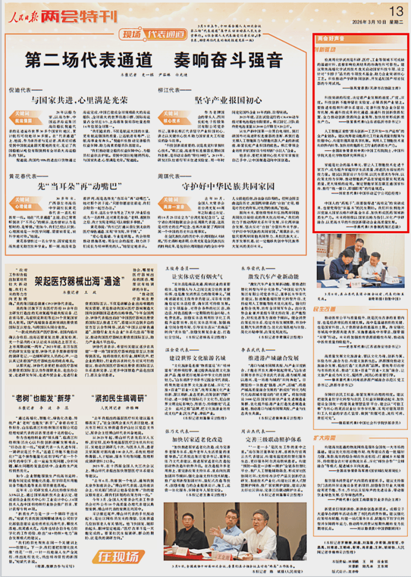 3月10日,《人民日报》两会特刊刊发了对全国人大代表、临沂市委书记张宝亮的采访报道。围绕创新驱动发展、加快培育新质生产力,张宝亮代表系统阐述了临沂思路与务实举措。