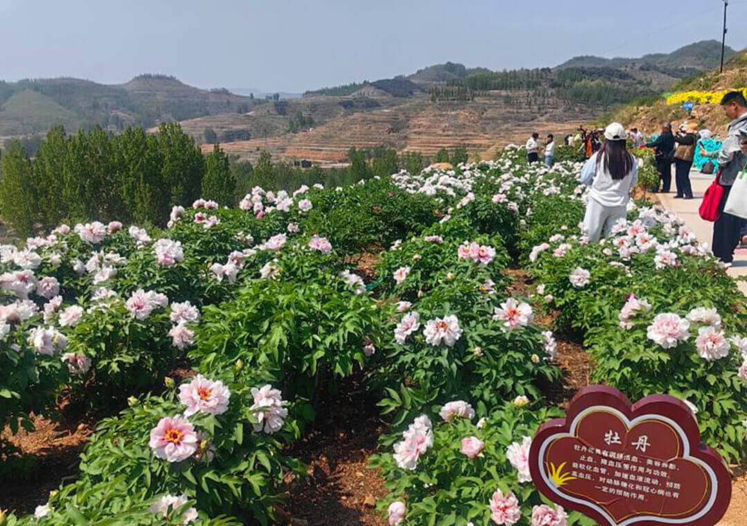 “丹皮是牡丹的根皮,能够清热凉血、活血化瘀。”花田里,一队前来研学的小朋友,正在听老师讲解。